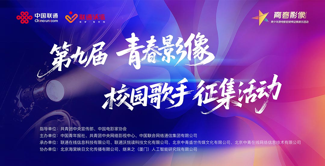 第九届“青春影像”青少年微电影短视频征集展示活动由共青团中央宣传部指导,中国青年报社、共青团中央网络影视中心、中国联合网络通信集团有限公司主办,联通在线信息科技有限公司、联通沃悦读科技文化有限公司、北京中青盛世传媒文化有限公司、北京中青在线网络信息技术有限公司等单位共同承办。