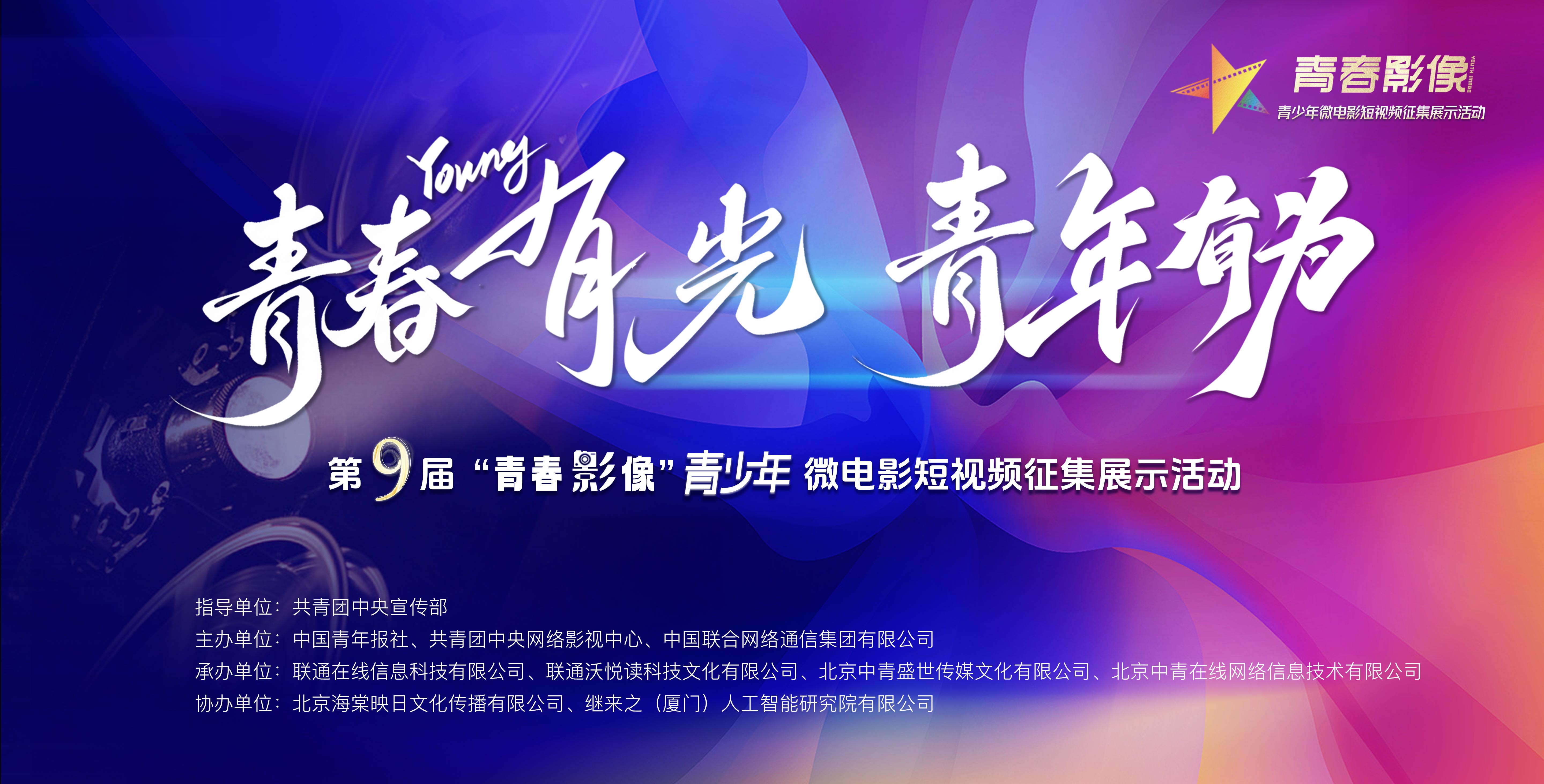 第九届“青春影像”青少年微电影短视频征集展示活动由共青团中央宣传部指导,中国青年报社、共青团中央网络影视中心、中国联合网络通信集团有限公司主办,联通在线信息科技有限公司、联通沃悦读科技文化有限公司、北京中青盛世传媒文化有限公司、北京中青在线网络信息技术有限公司等单位共同承办。